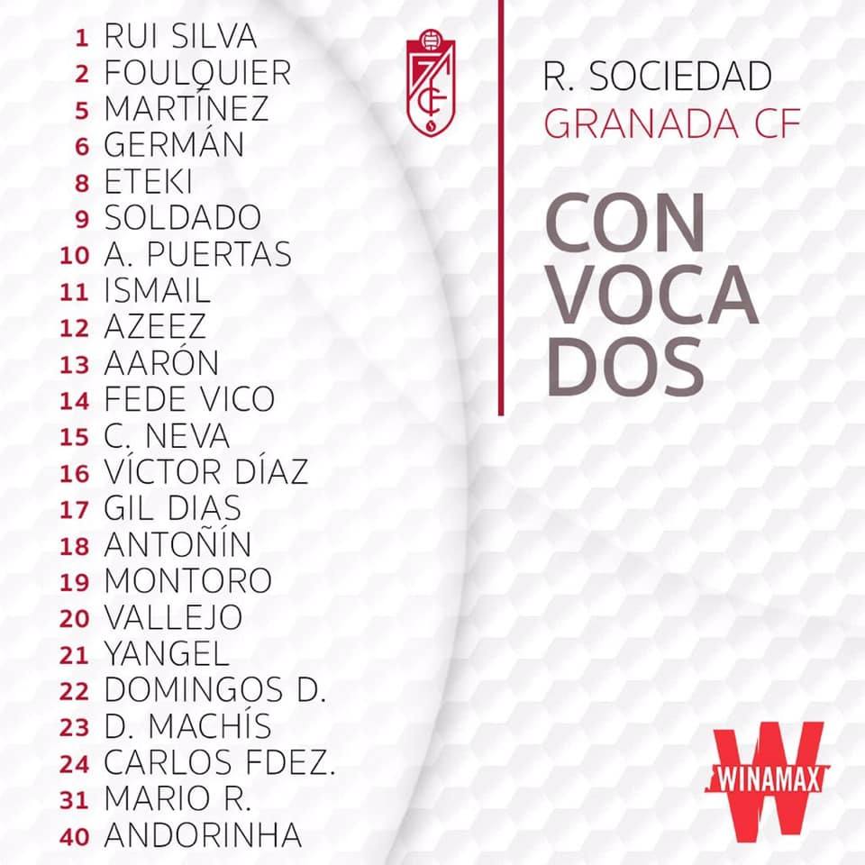 Granada: Rui Silva; Víctor Díaz, Germán, Domingos; Foulquier, Eteki, Yangel Herrera, Carlos Neva; Puertas, Carlos Fernández y Soldado.