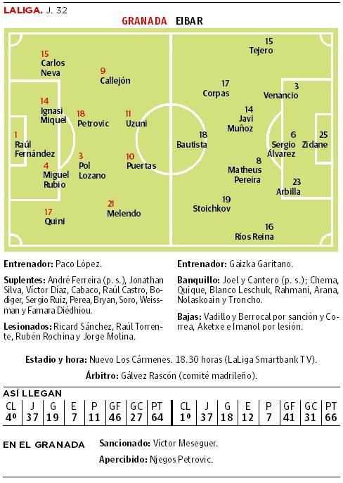 Sí podría haber una nueva vuelta de tuerca en la medular, a la que podría volver Pol Lozano, aún por chequear junto a Petrovic de inicio. No estará seguro Meseguer, sancionado. Será un partidazo, con Los Cármenes lleno una vez más. Habrá recibimiento al autobús a las 16.00 horas y tifo. El 'código de etiqueta': todos de rojiblanco.