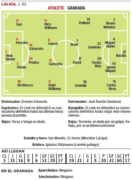 Esas dos decepciones explican la euforia en Bilbao por la vuelta de la gabarra a la ría 40 años después; más incluso de los que estuvo el Granada fuera de Primera división hasta 2011. Ahora, los rojiblancos se ven invitados a la resaca del Athletic en San Mamés sin toparse tampoco a un equipo en chanclas, como sí lo pareció el Alavés en Los Cármenes el pasado domingo. Los 'leones' siguen en la lucha por clasificarse para la Champions la próxima temporada al encontrarse quintos a solo cuatro puntos del Atlético de Madrid. Ya estuvieron a punto de ganar al Villarreal pese a la semana de juerga, con uno más eso sí toda la segunda parte por la expulsión de Santi Comesaña, aunque un penalti de Dani Parejo sobre la bocina dejó la cosa en empate.