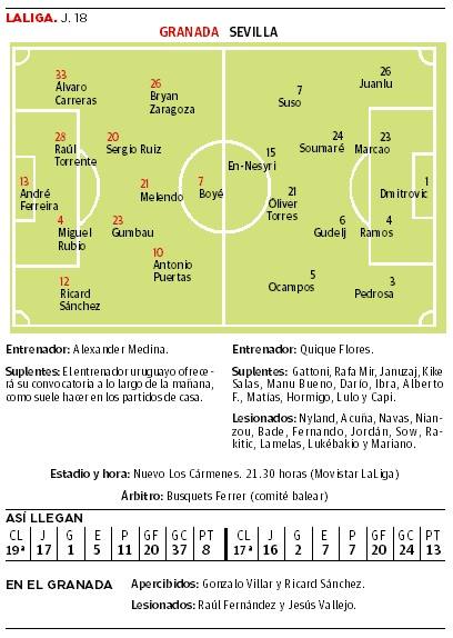 Derbi andaluz por todo lo bajo entre Granada y Sevilla, con ambos muy necesitados y un nuevo técnico en los hispalenses, el tercero de la temporada