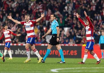 Estas polémicas arbitrales, unidas al gol anulado por milímetros y también con un trazo cuestionable de la línea en el VAR a Matías Arezo en la visita al Betis, despertaron el enfado de Los Cármenes. «Corrupción en la Federación», se cantó a los colegiados antes incluso de terminar el partido y tras el pitido final.