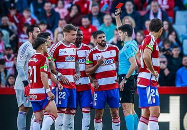 En el Granada hay mosqueo por los recientes episodios arbitrales que vienen perjudicándole, o al menos así lo entiende su entrenador, Alexander Medina. «En los cuatro últimos partidos hubo tres con decisiones de VAR en nuestra contra. Decisiones que nos perjudicaron y que cuestan puntos en partidos parejos que una línea decanta para un lado u otro», aludió el 'Cacique'. En este último encuentro, en concreto, el uruguayo lamentó que su interpretación de la jugada de la expulsión de Kamil Piatkowski «no coincidiera» con la del árbitro Busquets Ferrer al sostener que el balón no iba hacia la portería de Augusto Batalla, que la falta no fue tan brusca y que Carlos Neva habría llegado a la cobertura, algo que Pizarro Gómez negó al colegiado de campo desde la sala VOR de Las Rozas tras llamarle a revisión.