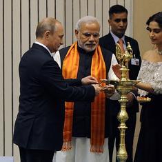 El primer ministro indio, Narendra Modi (d), y el presidente de Rusia, Vladimir Putin.