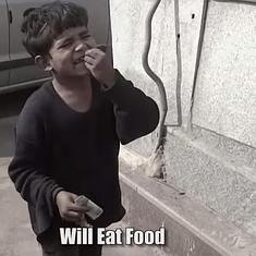 El pequeño indio revela que trabaja vendiendo lápices en la calle y asegura que si no va a la escuela es porque debe mantener a su hermanita y a su madre que está enferma. Su padre murió hace ya algunos unos años