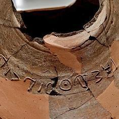 En los fragmentos se descubrieron unas inscripciones que despertaron la curiosidad de los investigadores, Yosef Garfinkel, del Instituto de Arqueología de la Universidad Hebrea de Jerusalén, y Saar Ganor, de la Autoridad de Antigüedades de Israel. Al recomponer los fragmentos los arqueólogos descifraron el nombre de Eshbaal ben (hijo de) Beda en letra canaanea antigua.