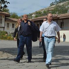 El descorche se produjo durante la visita del ex primer ministro italiano a la península anexionada por Rusia el año pasado