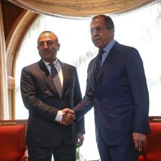Mevlut Cavusoglu y Serguéi Lavrov, ministros de Exteriores de Turquía y Rusia.