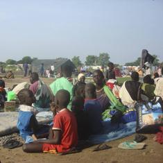 Varios desplazados se refugian en una base de la ONU en Tomping, Yuba.
