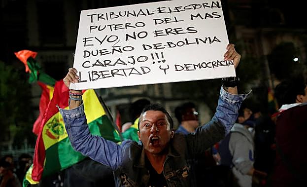 La violencia se extendió la noche del lunes por Bolivia en protesta por un supuesto fraude electoral a favor del presidente Evo Morales. Los ... distubios comenzaron después de que el Tribunal Supremo Electoral difundiese datos preliminares que dan la victoria al actual mandatario, pese a que en el recuento oficial, que está paralizado en el 83%, va prácticamente empatado con el opositor Carlos Mesa. Los incidentes se produjeron en La Paz frente al hotel donde se realiza el recuento. La sede regional del tribunal electoral en la ciudad de Potosí fue incendiada, mientras que otras en varias regiones sufrieron ataques.