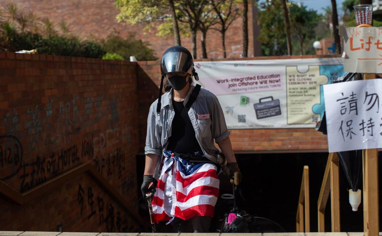 Decenas de jóvenes activistas antigubernamentales permanecen este miércoles encerrados por cuarto día consecutivo dentro de un campus universitario en Hong Kong, con la policía cercándolos bajo la amenaza de que serán detenidos cuando salgan.