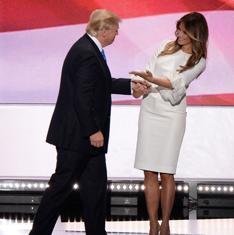 Trump lo arregló a su estilo, con una entrada triunfal copiada de Michael Jackson que dibujaba su perfil en una cortina de humo. Se supone que el nominado no aparece en el escenario de la convención hasta el último día, cuando se le corona, pero Trump escribe sus propias reglas. Ayer quería un baño de masas y para ello utilizó como excusa la presentación de su esposa Melania, una modelo de Eslovenia que plagió frases del discurso de Michelle Obama en la convención de 2008. A la pareja le puso la música Queens, con su canción We are the Champions, porque, a diferencia de Bruce Springsteen, The Rolling Stones, Adele y tantos otros que le han prohibido legalmente que use sus canciones, Freddie Mercury ya no puede levantar la cabeza.
