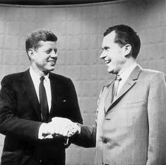 La Universidad de Hofstra, en Hempstead (Nueva York), ha acogido este lunes el primero de los tres debates entre los dos candidatos a la Casa Blanca, la demócrata Hillary Clinton y el republicano Donald Trump. Una cita a la que ambos han acudido prácticamente empatados en las encuestas y que se antoja crucial en la carrera presidencial. El 'cara a cara', que ha estado moderado por el presentador de la NBC Lester Holt, se ha dividido en seis segmentos temáticos de 15 minutos cada uno. Al debate de este lunes seguirá otro entre los dos aspirantes a la vicepresidencia, Tim Kaine y Mike Pence, que se celebrará el 4 de octubre en la Longwood University, en Farmville (Virginia). Y Clinton y Trump volverá a confrontar sus propuestas el 9 de octubre en la Washington University de St. Louis (Misuri). El tercer y último enfrentamiento televisivo entre los dos aspirantes presidenciales tendrá lugar el 19 de octubre en la Universidad de Nevada, en Las Vegas. Duelos que vendrán a alimentar una tradición que comenzara en 1960 con los cruciales 'cara a cara' librados por John F. Kennedy y Richard Nixon y que ha servido desde entonces para cimentar las opciones de algunos y tumbar definitivamente las esperanzas de muchos otros. Estos son los más destacados.