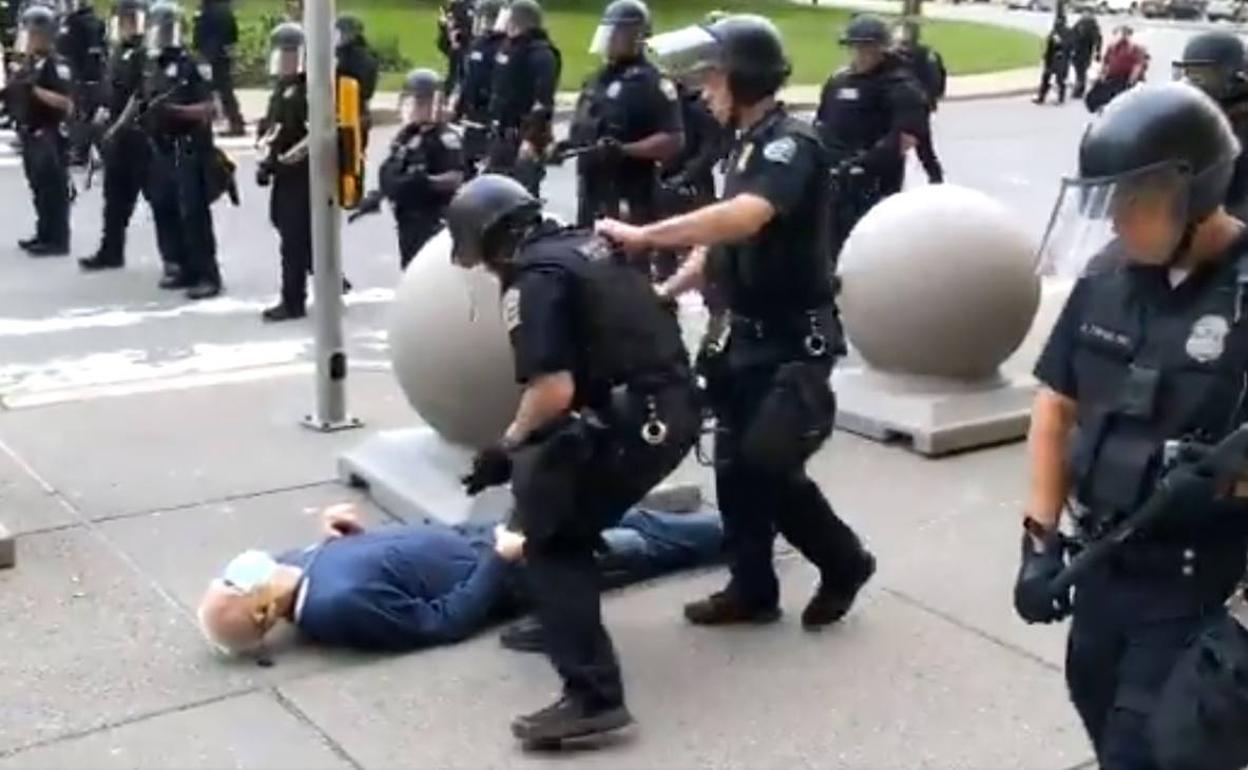 Dos agentes de Buffalo han sido suspendidos sin sueldo por el fatal empujón a Gugino, un veterano activista de movimientos pacifistas que pertenece al Comité de Solidaridad Latinoamericana. Uno de sus últimos tuits parece anticipar su suerte: «Los polis no deberían tener clubs, ni vestirse de antidisturbios. La Guardia Nacional debería arrestar a la Policía».