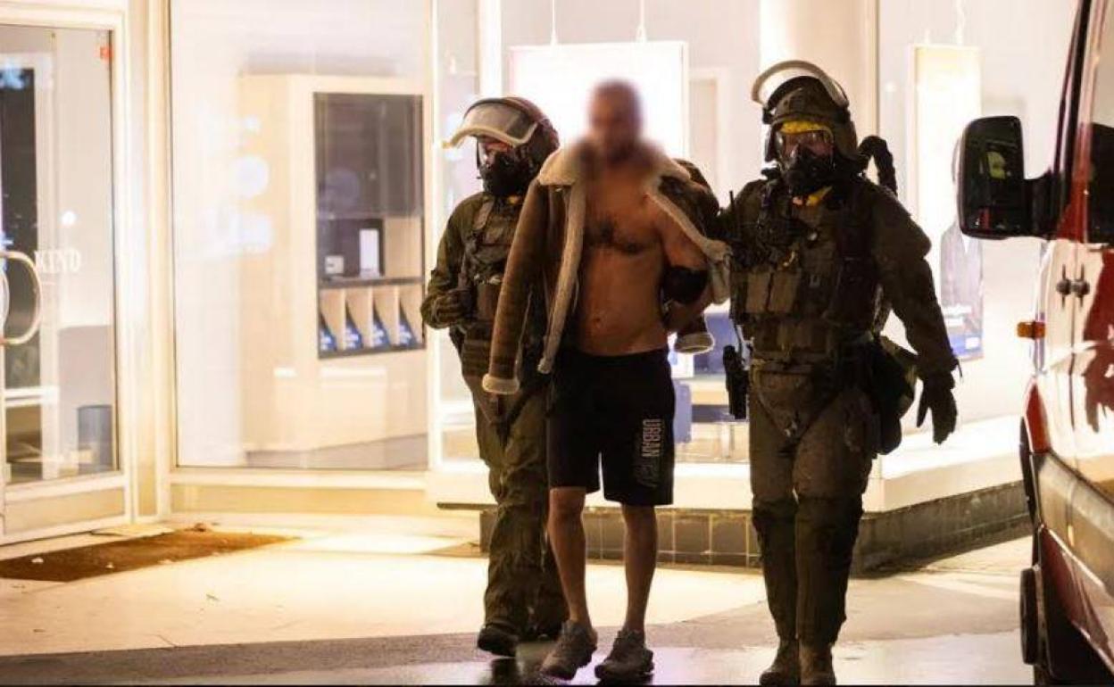 Los dos hombres fueron conducidos esposados sin ofrecer resistencia por agentes policiales que llevaban máscaras antigás a un vehículo para su traslado a comisaría. Uno de ellos vestía únicamente un pantalón corto deportivo e iba cubierto por una cazadora. El segundo vestía camiseta y calzoncillos. «Se han intervenido pruebas que serán analizadas», señalaron los responsables de la operación.