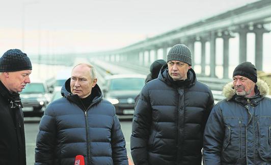 El presidente ruso, Vladímir Putin, visitó este lunes el puente de Crimea destruido parcialmente por una explosión en octubre, en su primer desplazamiento a la península anexionada en 2014 desde el inicio de la ofensiva en Ucrania. También es el primer desplazamiento del mandatario a un lugar directamente afectado por la guerra. La presidencia rusa publicó un víideo con imágenes de Putin al volante de un vehículo circulando por el puente que conecta el territorio ruso con la península.