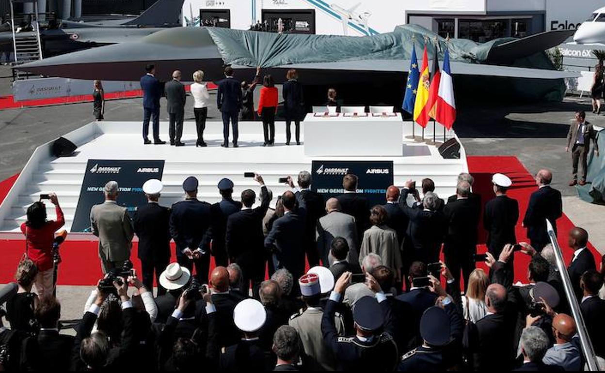 España no quiere quedarse atrás en el proyecto de defensa europeo y en el que será la pieza clave del Futuro Sistema de Combate Aéreo - ... con las siglas FCAS en inglés-, un avión caza que sustituirá a los actuales 'Eurofighter' y 'Rafale'. Emmanuel Macron y Angela Merkel dieron el pistoletazo de salida en 2017 a este proyecto europeo, al que este lunes se sumó Madrid con la firma de un acuerdo marco en el que España participa a partes iguales con Francia y Alemania.