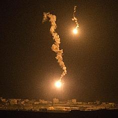 Al caer la noche, la aviación lanza decenas de bengalas que aventan la noche e iluminan los barrios para permitir operar a las fuerzas terrestres, mientras aviones de combate y buques de guerra lanzan misiles.