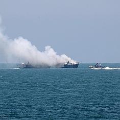 "Estábamos sentados en la playa y de repente hubo una explosión", ha declarado Ahmed Nofal. Navíos de la marina egipcia zarparon a ayudar a la tripulación y una espesa humareda negra se levantaba del patrullero.