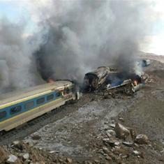 Las imágenes captadas por los medios iraníes muestran al menos dos vagones completamente en llamas y uno de ellos descarrilado, rodeados de decenas de personas que asisten impotentes a la escena.