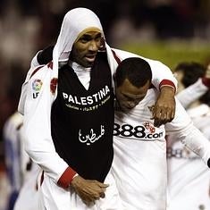 Por otra parte, no es la primera vez que la defensa de sus ideales le causa problemas. El 7 de enero de 2009 Kanouté marcó un gol con el Sevilla al Deportivo La Coruña en la Copa del Rey y mostró una camiseta negra que llevaba debajo con el lema 'Palestina' en apoyo al pueblo de Oriente Próximo durante el conflicto de la Franja de Gaza. El árbitro cumplió el reglamento y le enseñó la tarjeta amarilla y la Federación Española de Fútbol le impuso una multa de 3.000 euros. El delantero no ha olvidado aquello y lo comparó con la situacion actual: «En 2008 mi apoyo a Palestina era por algo mil veces peor que lo que pasó en Francia el otro día y la Liga me puso una multa por aquello. No hay que ser hipócritas y decir que es muy triste cuando le pasa algo a los nuestros y con el resto no pasa nada».