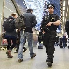 Un policía armado vigila la estación de St. Pancras en Londres.