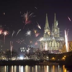 Fuegos artificiales iluminan la catedral de Colonia (Alemania).