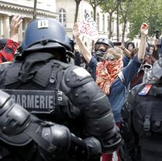 Varios cientos de personas encapuchadas se enfrentaron a los policías poco después del inicio de esta manifestación, la novena organizada por los sindicatos desde marzo. Los enfrentamientos han dejado 40 heridos, según las autoridades. Además se han practicado 58 detenciones.