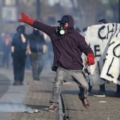 Once policías heridos durante una violenta protesta en Nantes contra Le Pen