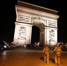 Varios agentes vigilan los Campos Elíseos después del tiroteo.