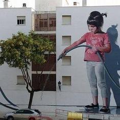 El artista José Ríos riega de nuevo con su arte las calles de Estepona