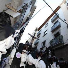 A esa hora de la tarde, toda la atención estaba puesta ya en el discurrir del cortejo: empleadas municipales asomadas a los balcones del Ayuntamiento, palos que emergían para hacer fotos más cerca, alfombra de cáscaras de pipas de quienes habían esperado en las escalinatas de la plaza y equilibristas en los bordes de los grandes maceteros-cenicero recién plantados de surfinias.