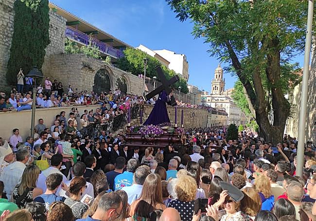 Miles de jienenses, devotos o meros curiosos del histórico suceso, están acompañando a la más célebre imagen de la Madrugá y el Viernes Santo jienenses, en la tarde soleada de un lunes de mayo. Eso sí, día 1, festividad de San José Obrero. Arroparon a Nuestro Padre Jesús Nazareno en la súplica por el agua que tanto ansía y necesita la tierra jienenses, sus campos y sus pantanos.