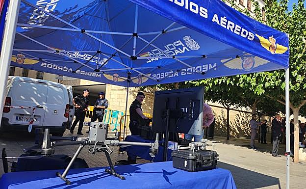 Asimismo, se ha llevado a cabo una demostración de recursos y un helicóptero ha sobrevolado la plaza, seguido de un dron, para terminar con el pase de la unidad canina (representados por Gamora y Gimli), a caballo y un coche capaz de reconocer cientos de matrículas en minutos.