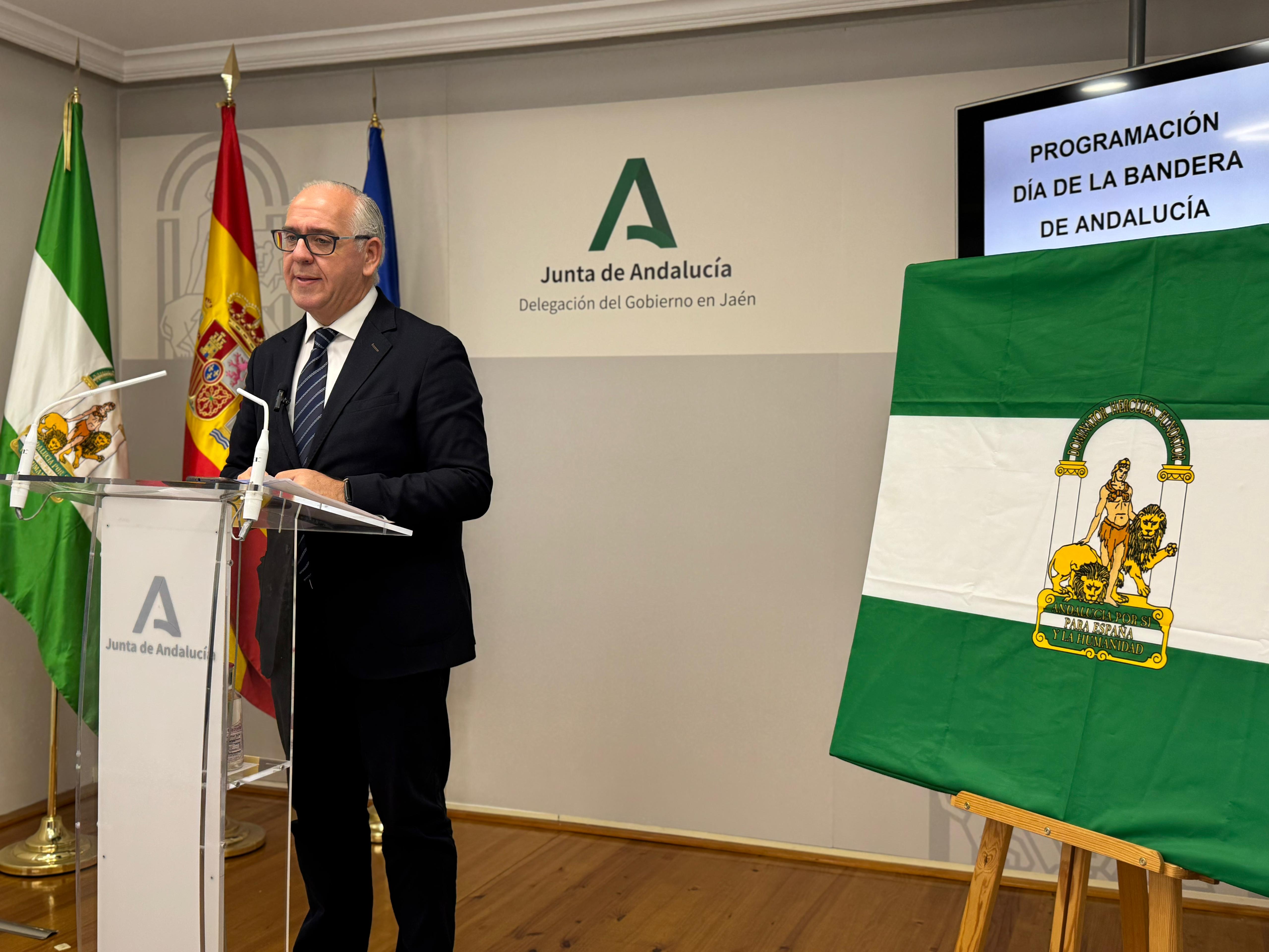 «Para el Gobierno de la Junta de Andalucía, la bandera garantiza el derecho a la autonomía y a los principios de igualdad y solidaridad; una bandera que es símbolo de nuestro pasado, nuestro presente y nuestro futuro, un presente y un futuro que es moderación y diálogo», ha dicho el delegado del Gobierno andaluz, Jesús Estrella, que ha sido el encargado de informar sobre las actividades este martes.