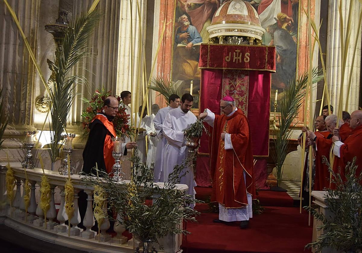 El obispo bendice palmas y ramas de olivo en la iglesia del Sagrario