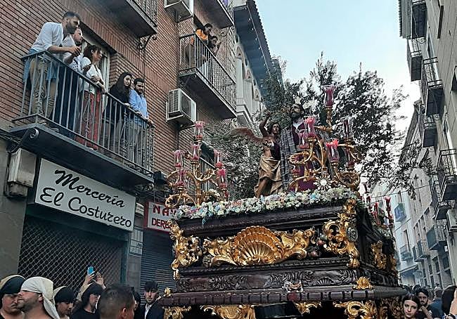 A las siete de la tarde estaba ya el paso de Jesús Orando en el Huerto en la calle, tras la complicada salida por la estrecha puerta del templo, que siempre requiere de una extrema concentración por parte de los costaleros. Lo mismo sucede con el palio de María Santísima de los Desamparados, con paciencia y mimo para reunirla con los jienenses en sus calles.