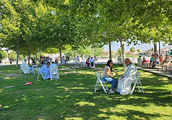 Una de las novedades que ha traído consigo la procesión Magna han sido las confesiones al aire libre. En la explanada del Corte Inglés, guarecidos por los árboles del jardín, varios curas ofrecían escuchar, aconsejar y perdonaban los pecados de los fieles. María Dolores Campos ha sido una de las personas que se ha acercado y admite que le ha «gustado». Viene de Almería, aunque es de Arjona, con la intención de disfrutar todo el fin de semana de la Magna. Conocía de antemano la opción de las confesiones y decidió probar. «El párroco es muy encantador y ayuda bastante, me ha gustado», afirmaba.