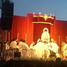 La comitiva recorrió el itinerario que separa la parroquia de la Asunción del paseo de Jesús entre vítores y vivas. Un itinerario muy bien adornado con banderas en los balcones y con varias decenas de miles de flores blancas elaboradas por los propios vecinos del municipio. Se habían instalado algunas pantallas de televisión para facilitar el seguimiento de la ceremonia a los miles de espectadores.