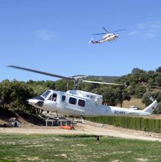 Un helicóptero de Huelma colabora en el incendio de El Castillo de las Guardas