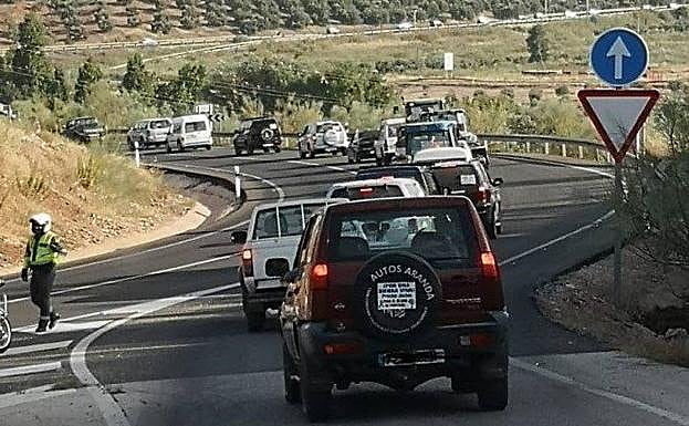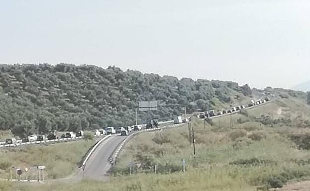 La caravana de vehículos circula cercana al margen derecho y la previsión es que no se corten carreteras