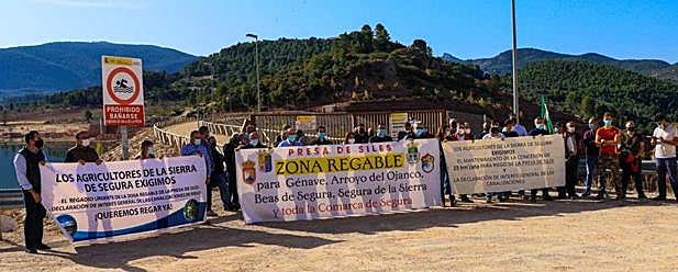 Concentración ante la presa de Siles, construida hace cinco años y sin poder usar su agua aún