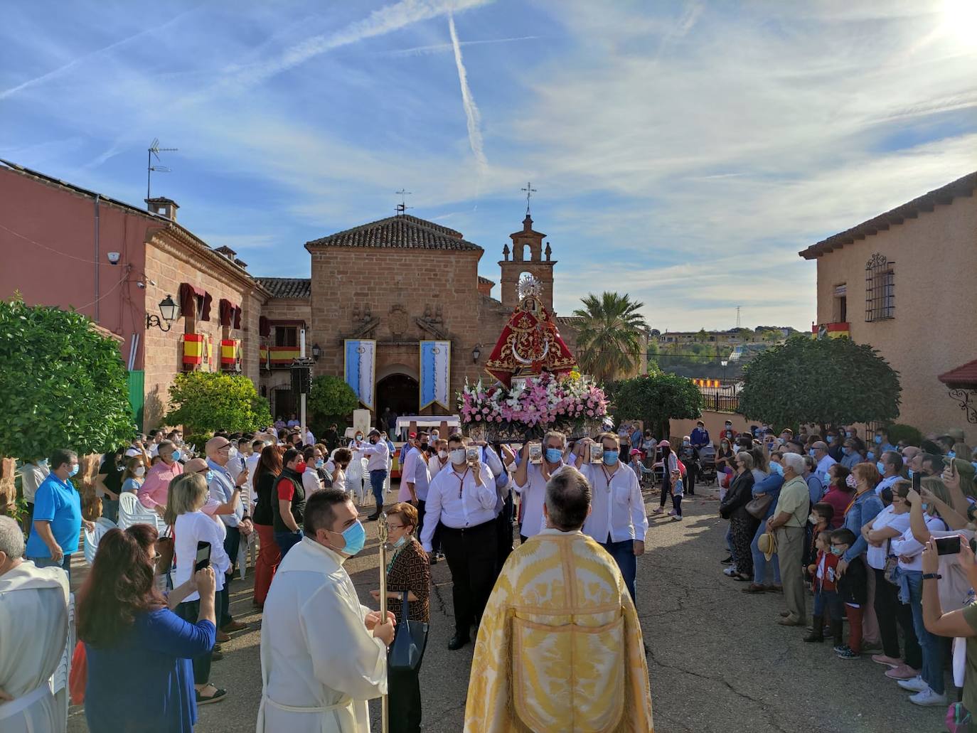 El tono flamenco en esta misa de campaña lo pusieron los sones de las plegarias del coro romero Mejorana. Tras la celebración la imagen recorrió las calles de la aldea acompañada por sus devotos a hombros de su cuadrilla de anderos respetando las distancias y otros requisitos. Previamente el ayuntamiento había implementado un protocolo covid especial para la ocasión.