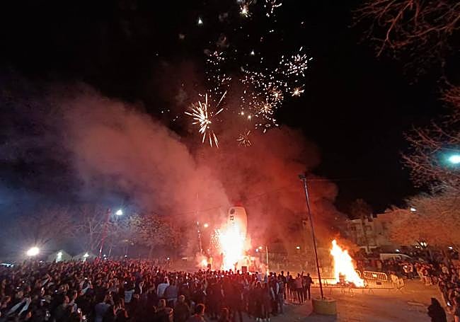 La 'Gran quemá' volvió a conquistar a vecinos y visitantes con un diseño en forma de cohete y célebres extraterrestres a su alrededor