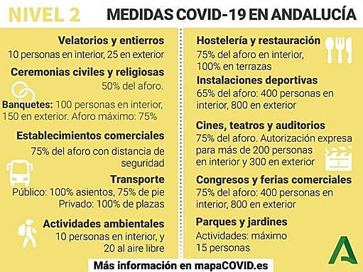 Toda la provincia se encuentra actualmente en nivel 2 de alerta. No obstante ya ha provincias enteras en nivel 1 como Almería o Málaga o con distritos como Granada o Cádiz, donde las restricciones son menores.