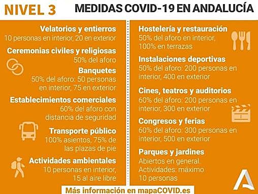 El cambio en el nivel de alerta no influye en los horarios, que seguirán como hasta ahora, pero sí supone mayores restricciones en los aforos. La hostelería, por ejemplo, solo podrá funcionar a la mitad de su aforo en interiores.