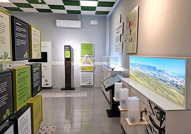 En el interior, se distribuye en varios espacios. La recepción, un espacio de olivocultura, otro de producción con una aplicación táctil de desarrollo pedagógico; una parte dedicada a la gastronomía, con el aceite de oliva virgen extra como protagonista; otro espacio focalizado en la salud; un rincón dedicado a las variedades del aceite de oliva y cómo reconocerlas; y un área para la creación de aceite, una aportación tecnológica e interactiva que cuenta con una aplicación de vídeojuego original.