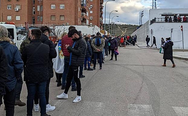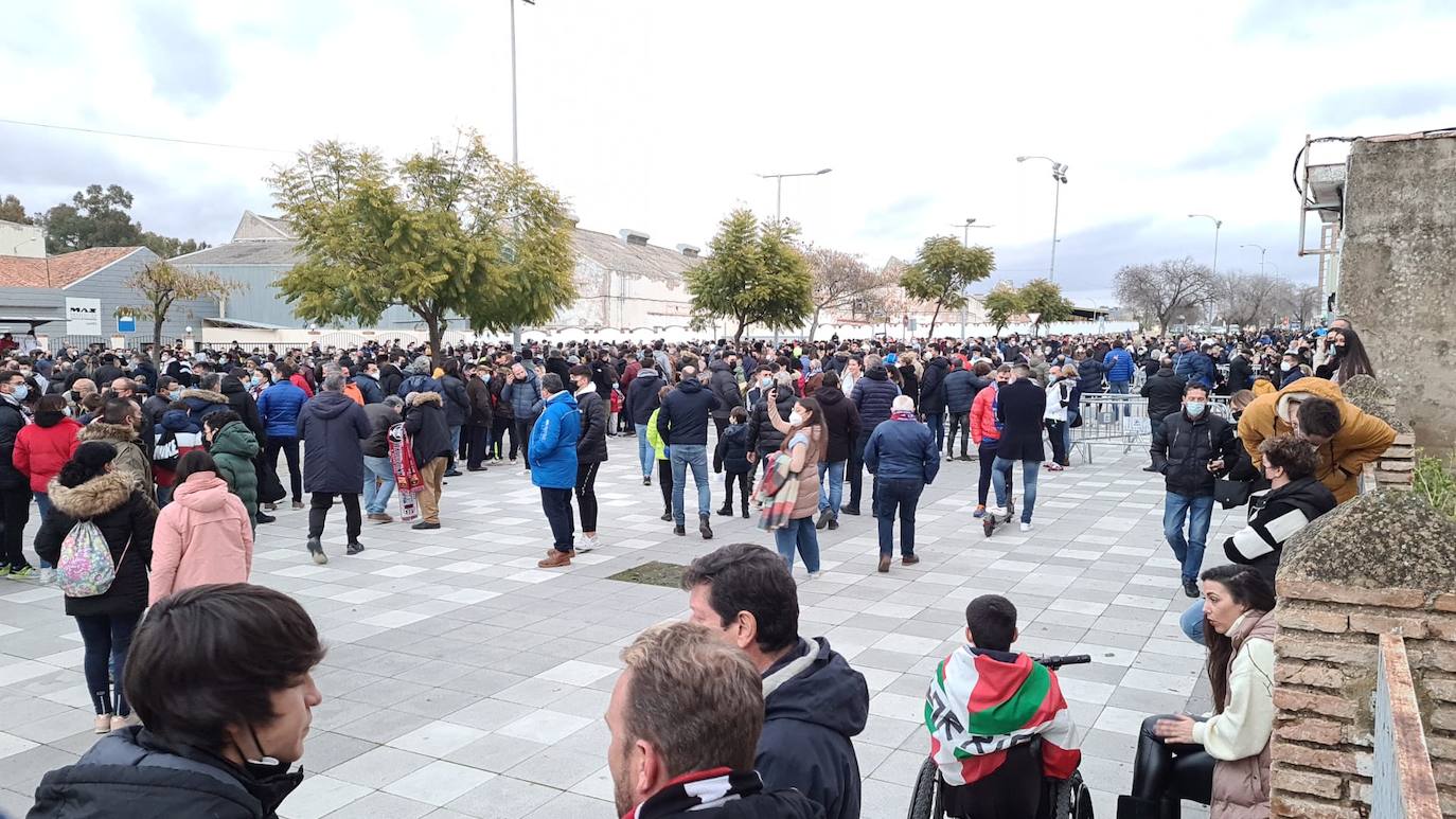 Desde hora y media antes del inicio del encuentro hay ya largas colas para acceder al estadio de Linarejos, que ya bulle con la presencia de los aficionados más madrugadores y con la expectación a su alrededor.