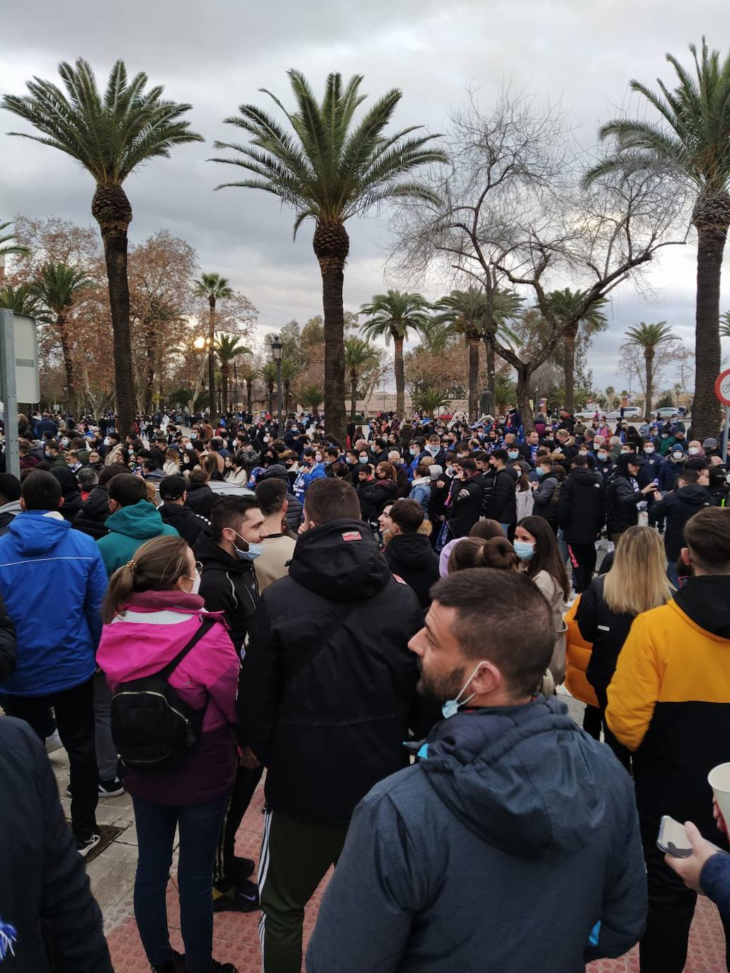 Desde dos horas antes se vive la 'fiesta' del partido de Copa del Rey entre el Linares y el FC Barcelona en las inmediaciones