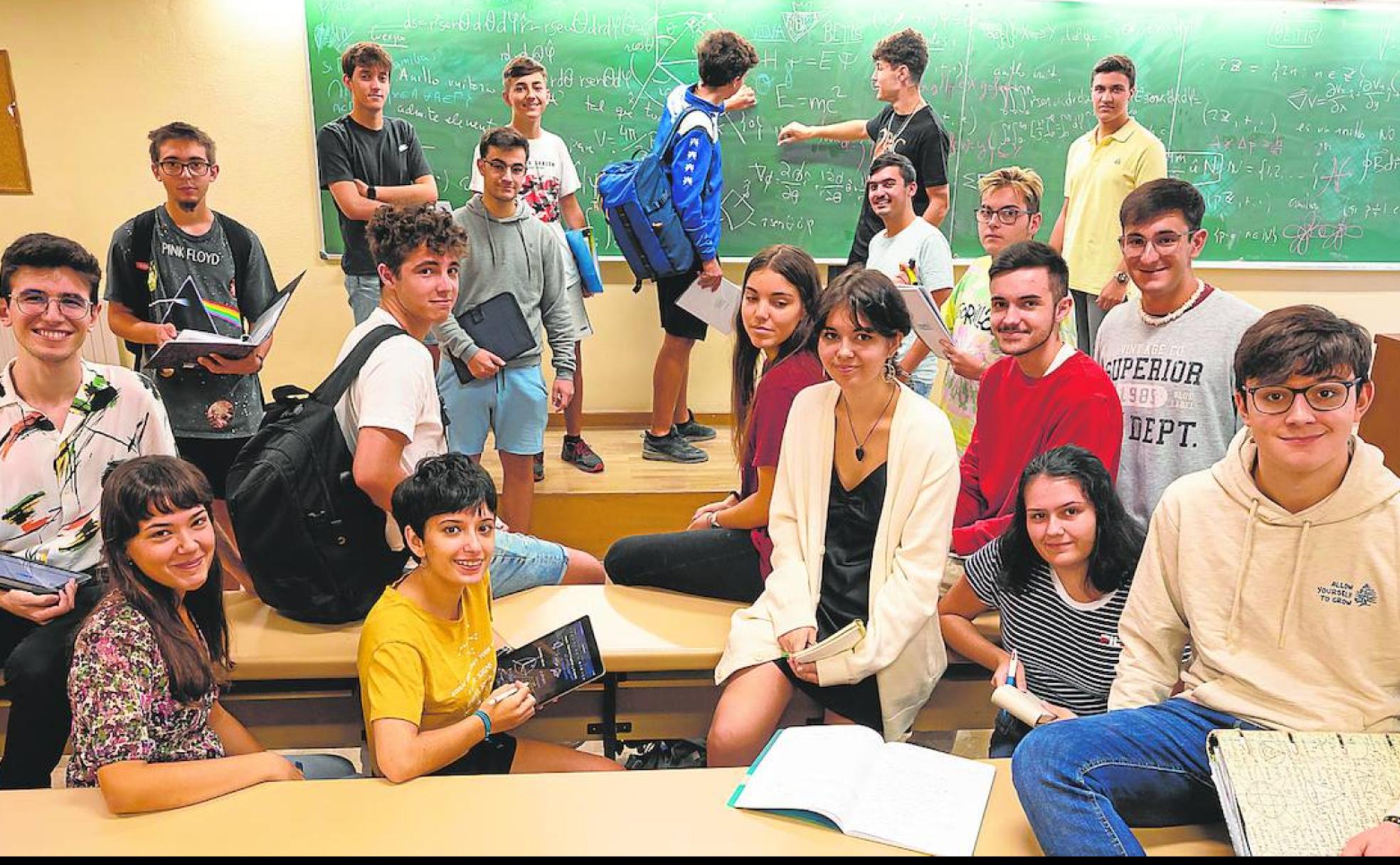 Solo hace cinco días que se conocían pero ya hay bromas entre ellos. «Y yo sin peinarme», dice divertido uno de ellos a la hora de la fotografía. «Tú siempre estás guapo», le replica uno de sus nuevos compañeros. No dudaron en colocar todo tipo de fórmulas y escritos en la pizarra con una educación exquisita. Y alguno aprovechó para 'colar' el escudo del Betis. «Tengo el póster de Joaquín firmado en mi habitación», presume uno de ellos. No sin que otro de sus compañeros le afee que su escudo tiene cinco líneas verdes y no siete como el oficial. No dejan pasar ni una estos jóvenes de números y expedientes brillantes.