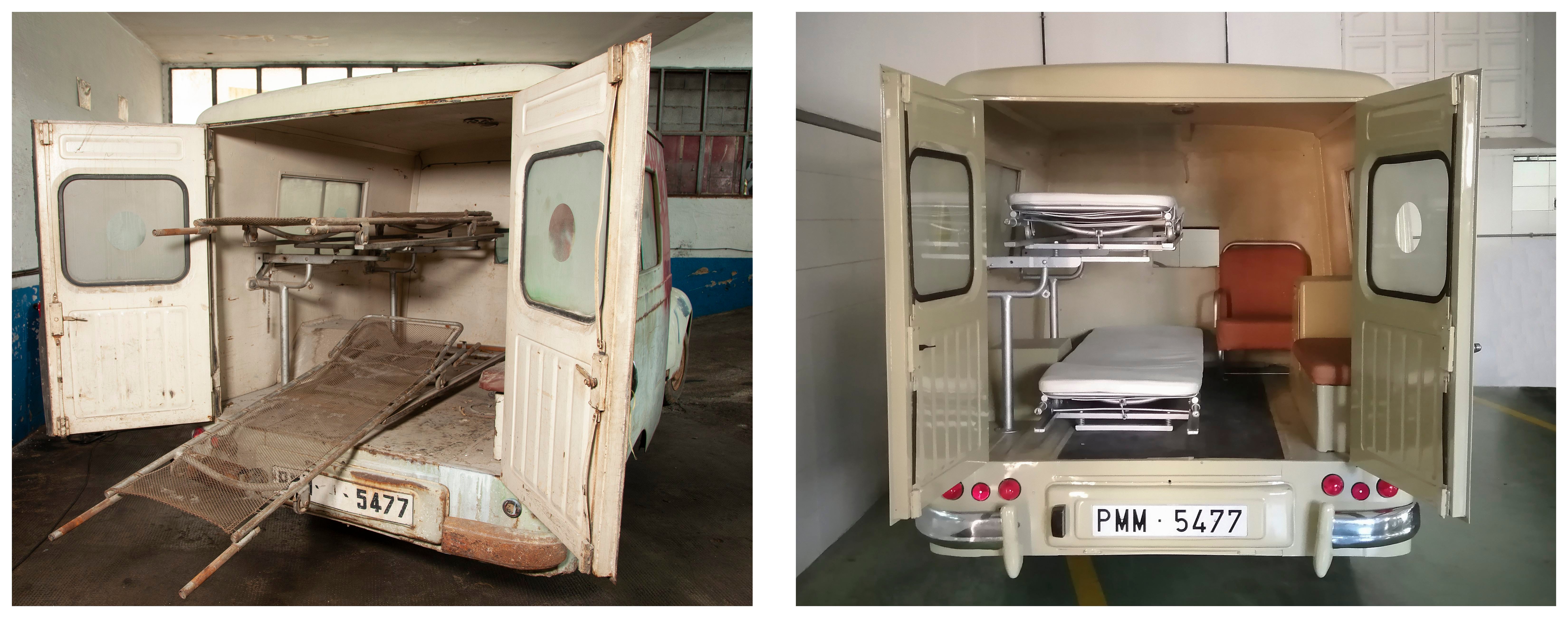 La restauración integral de esta pieza, perteneciente a la Colección de Patrimonio Científico-Tecnológico de la Universidad de Granada, finalizó en mayo de 2023 y fue coordinada por Teresa Espejo Arias, directora del Secretariado de Conservación y Restauración del Área de Patrimonio del Vicerrectorado de Extensión Universitaria, Patrimonio y Relaciones Institucionales. El trabajo fue desarrollado por profesionales y empresas especializadas en la conservación y restauración de vehículos históricos. El traslado de la ambulancia hasta la Facultad de Medicina ha sido realizado de modo desinteresado por la Escudería Granada 49.9.